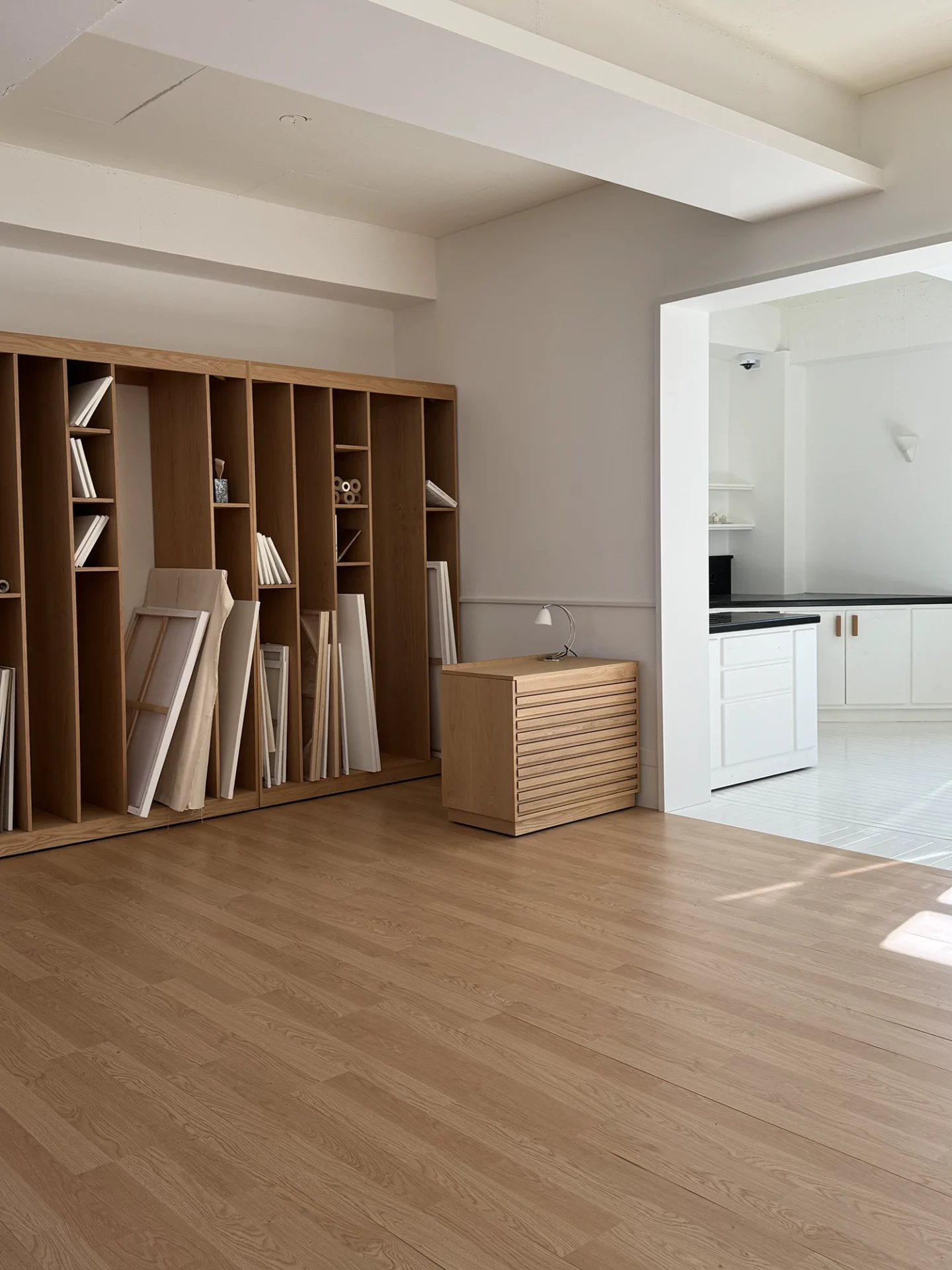 완성되지 않은 스케치와 작업들로 채워진 공간으로 화이트오크의 색감을 넓은 배경으로 담아낼수있습니다.